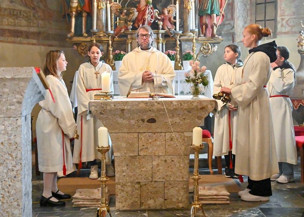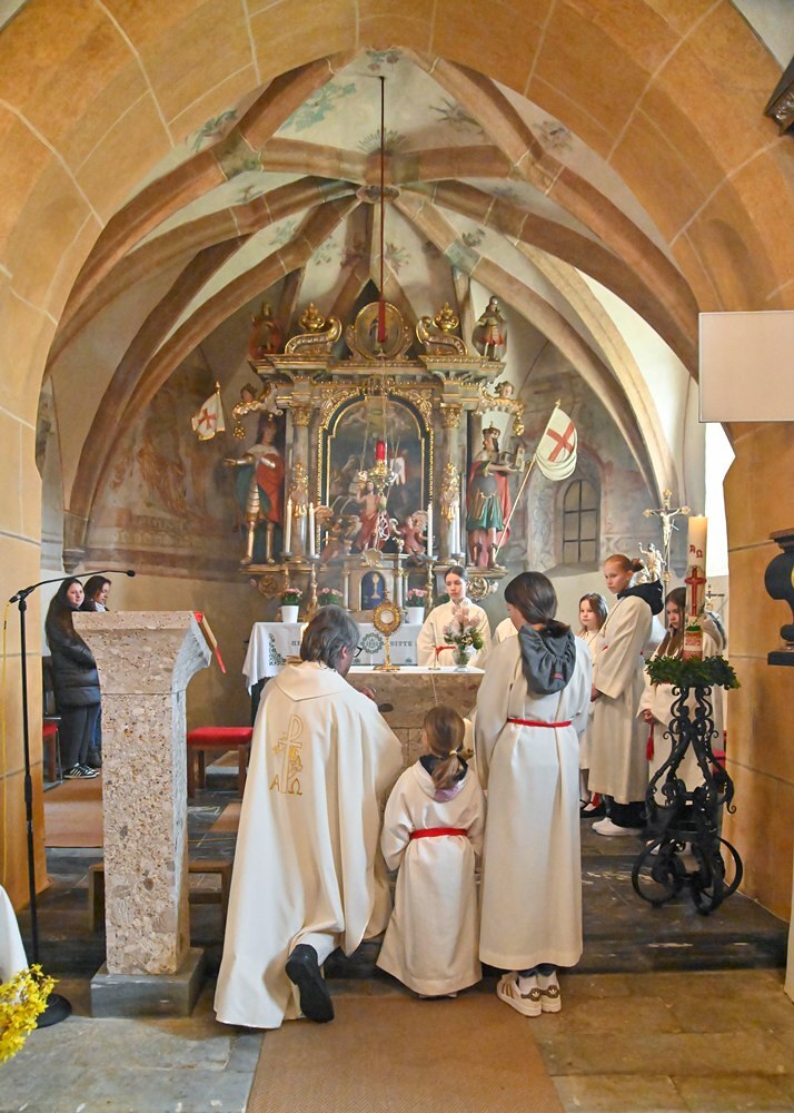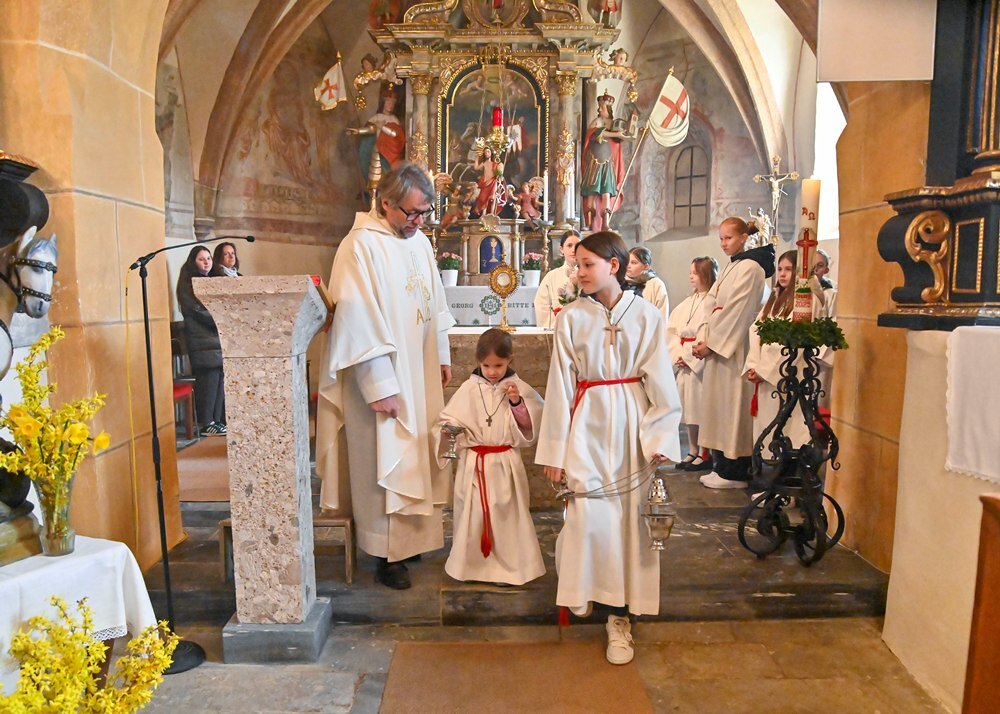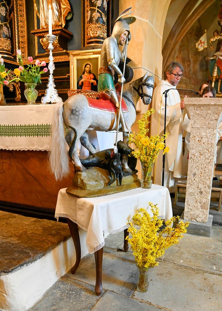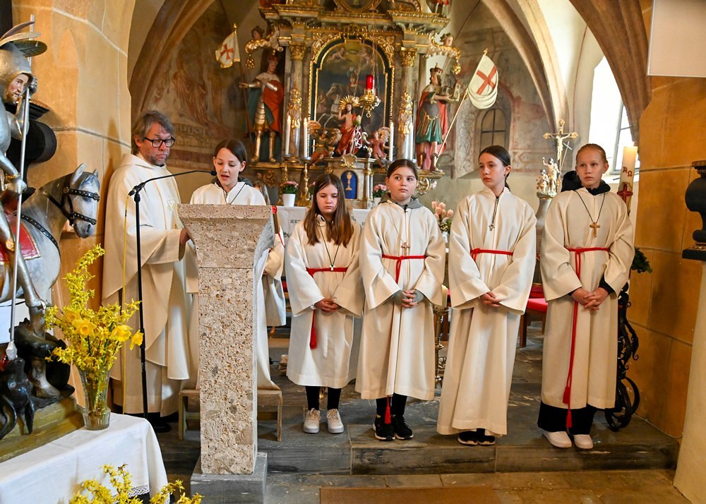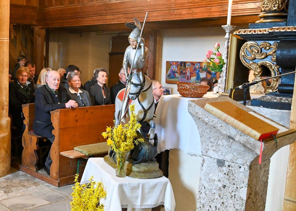 Heute feierten die Geörgler ihre Gemeinschaft anlässlich des Namenstages ihres Schutzpatrons dem Heiligen Georg. Das Wetter war ihnen wohlgesinnt, den die Regenwolken ließen endlich wieder mal Sonnenstrahlen durch. Ja wen die Georgner feiern, dann tut sich der Himmel auf. Pfarre Heimo Schäfmann vermittelte in seiner Predigt, wie wichtig Gemeinschaft ist, in der jeder einzelne, so wie er ist, eine wichtige Rolle spielt.
