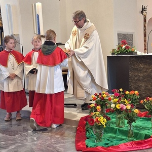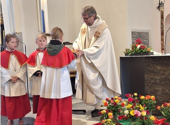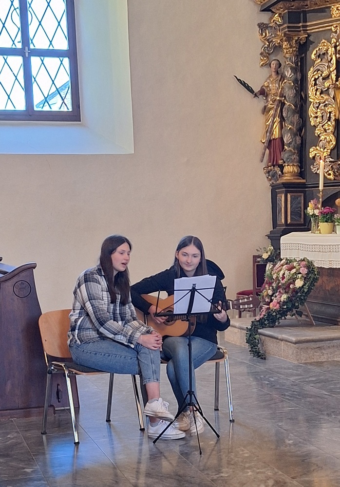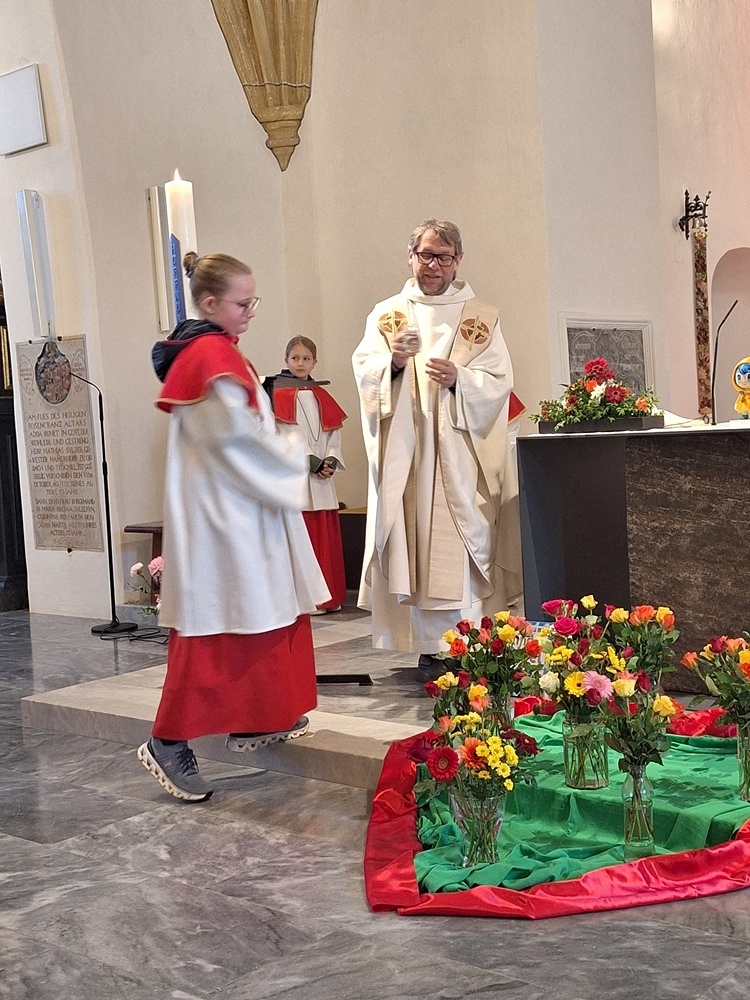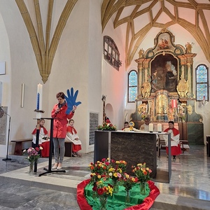 Nach der Kommunion zeigten die Minis noch, wofür Hände wichtig sind. Musikalisch wunderbar gestaltet wurde der Gottesdienst von den Rötscher Mädels.