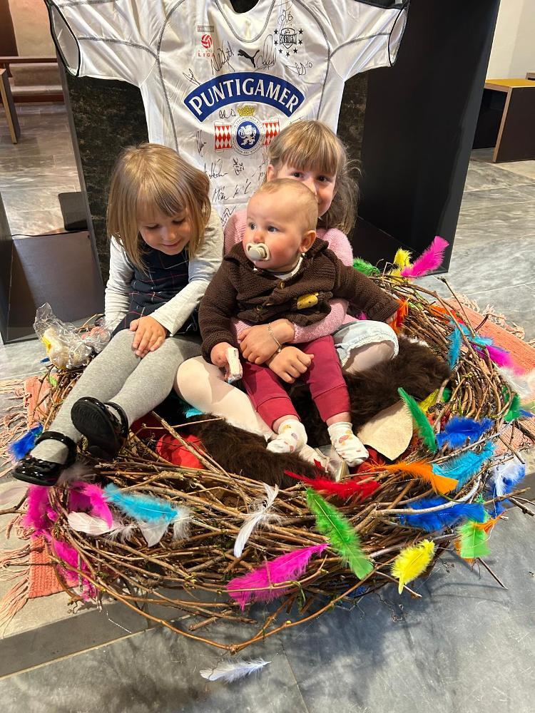 Das durften die Kinder im Anschluss im vorbereiteten Vogelnest ausprobieren.