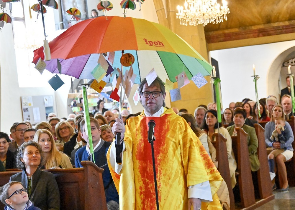 Pfarrer Mag. Heimo Schäfmann las in der Predigt wünsche von Eltern vor, wie sie ihre Kinder von Gott beschirmt fühlen.