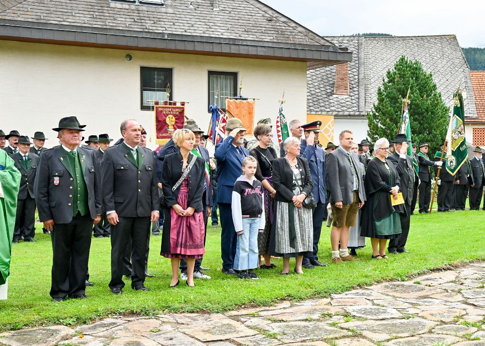 Heuer feierte zudem der ÖKB mit vielen Abordnungen und Vereinen sein 135 jähriges Bestehen. Nach einer sehr stimmigen Festmesse, zelebriert von Pater Josef Altenburger mit einer berührenden Predigt, galten dem ÖKB viele Glückwünsche. Im Anschluss folgte beim Kriegerdenkmal eine feierliche Kranzniederlegung, ebenfalls mit einer Segnung durch Pater Josef. Die gesamte Feier wurde mit herrlichen Musikstücken vom Musikverein Obdach gestaltet.