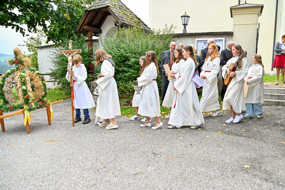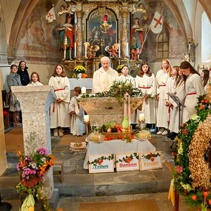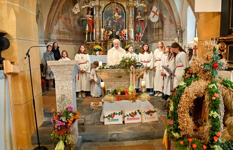 Unter dem Motto „Danken, Teilen, Freuen“ feierten wir heuer unser Erntedankfest in St. Georgen. Bei kühlem, aber schönem Wetter fanden sich viele Besucherinnen und Besucher ein, um gemeinsam Gott für die reichen Gaben des Jahres zu danken.