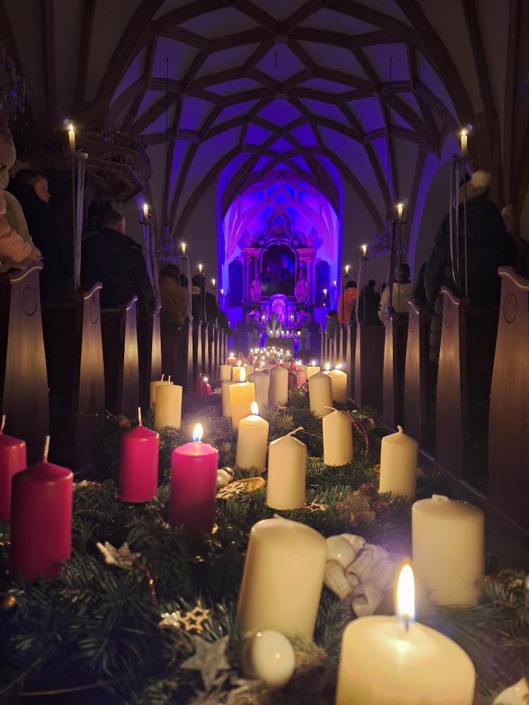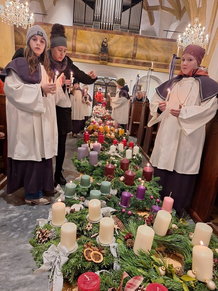 Ein sichtbares Zeichen der Vorbereitung auf das Kommen des Herrn ist der festlich geschmückte Adventkranz, der mit jedem Kerzenlicht die Freude mehr strahlen lässt.