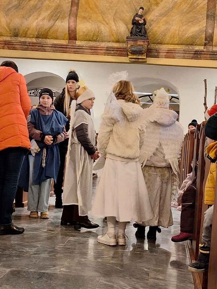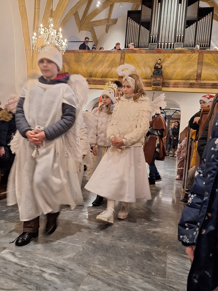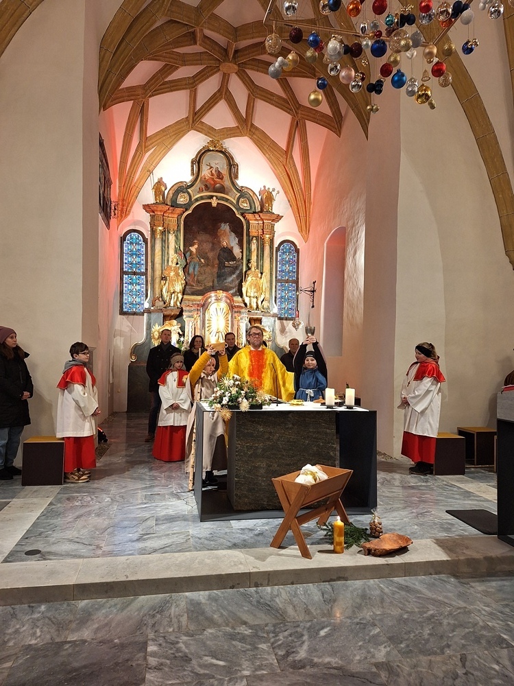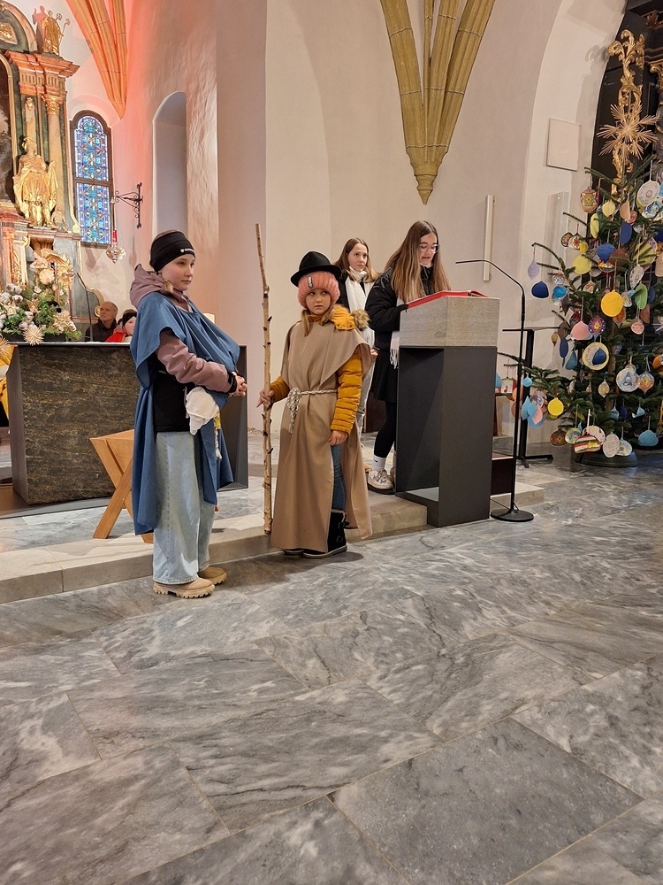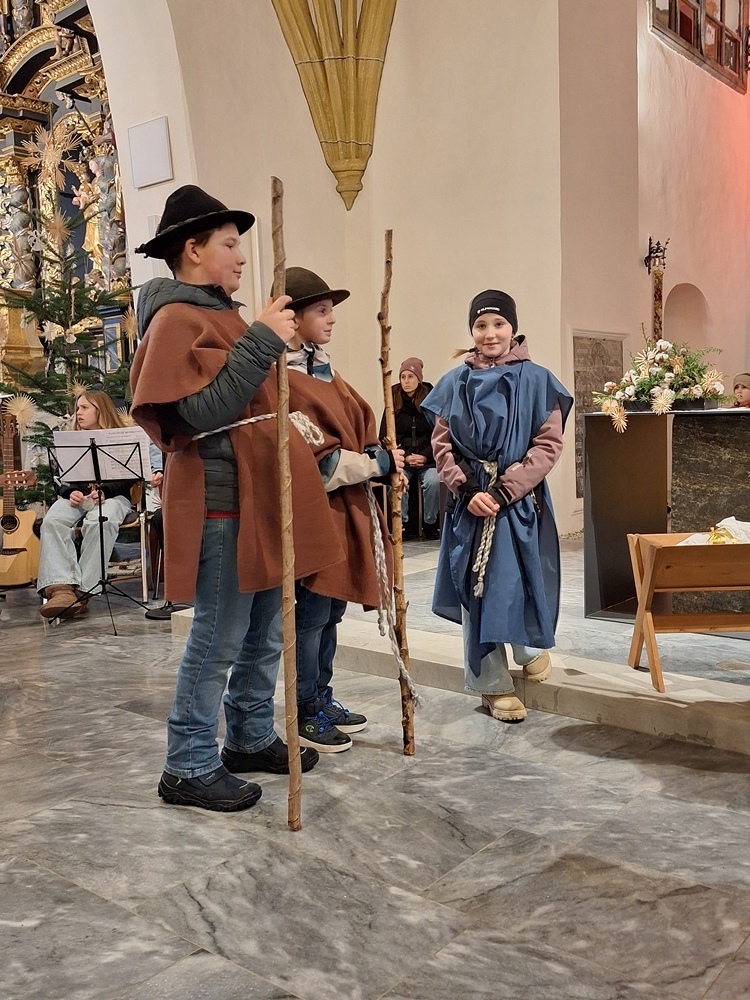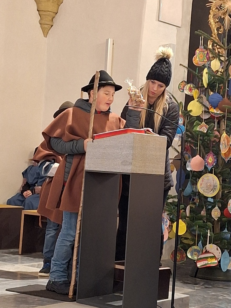 Auch heuer war es ein von vielen Kindern und deren Familien besuchten Gottesdienst am Nachmittag des Hl.Abends. Die Jungschar und Minis spielten, wie alle Jahre das Krippenspiel als Evangelium.