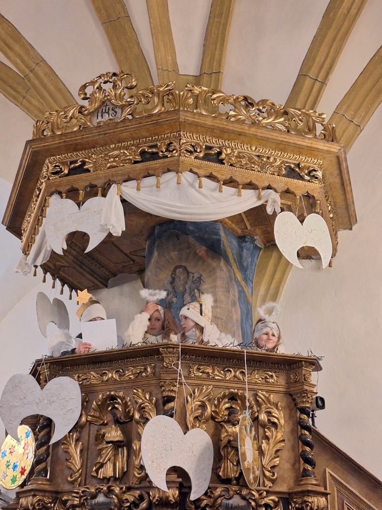 Auch der Engelchor nahm auf der Kanzel wiederum Platz und erfreute die Kinderherzen.