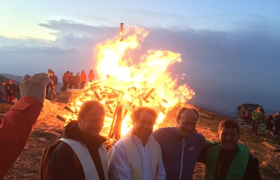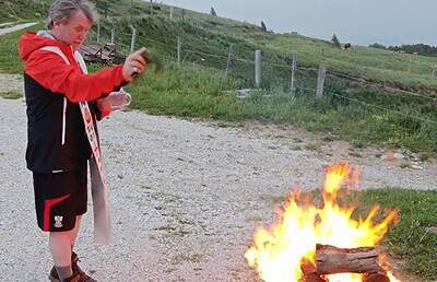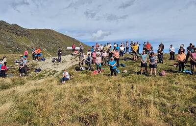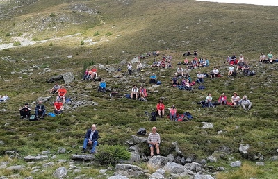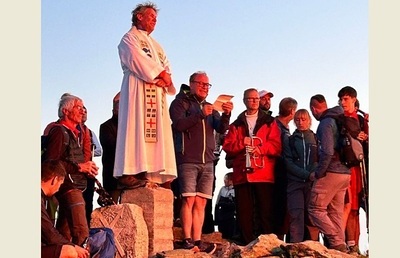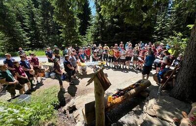 SOMMERKIRCHE, "Nach Regen folgt Sonnenschein" für eine motivierte Gruppe gestalteten die Jagdhornbläser Amering mit wunderbaren Weisen, am Ameringkogel die Wortgottesfeier, geleitet von PR Anni...