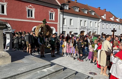 In Obdach ließ das Wetter die heilige Messe am Kirchplatz zu und die anschließende (verkürzte) Prozession führte zum "Kriegerdenkmal".