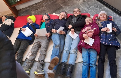 Eine Geschichte zum Thema "Zu Hause sein" , die von den Gruppen gestaltet wurde, war der Inhalt der gemeinsamen Feier.