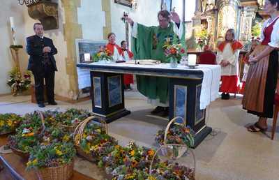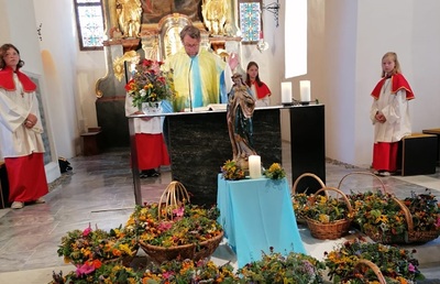 Bei der Sonntagsmesse mit Pfarrer Ferdinand Sattler wurden die Kräuter feierlich gesegnet.
