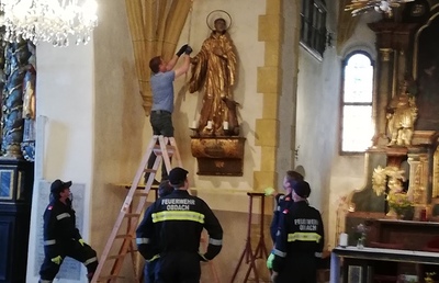 Eine kleine Abordnung der Obdacher Florianijünger feierte stellvertretend für die Feuerwehr und die Bevölkerung vom Obdacherland in der Kirche von St. Anna die Florianimesse.