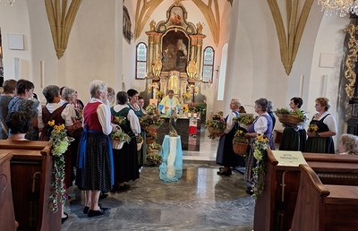 Heute brachten die Frauen der Trachtengruppe Steirisches Zirbenland ihre Kräuter-Sträuße in die Kirche, um sie im Rahmen der heiligen Messe weihen zu lassen.