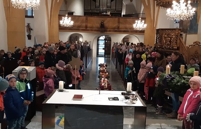 Viele "kleine Leute" bevölkerten die Pfarrkirche mit ihren Eltern. In der...