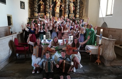 Mit dabei waren "Olli8ti", die den Gottesdienst in der Heimatpfarre unseres Pfarrers gestalteten und auch im Nachhinein für ein stimmungsvolles Miteinander sorgten.