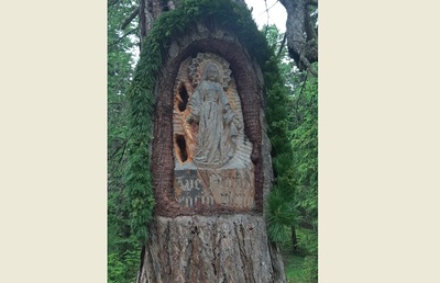 Zu Beginn wurde die neue Marien Statue in der Zirbe, die Fr. Hasler Grete...