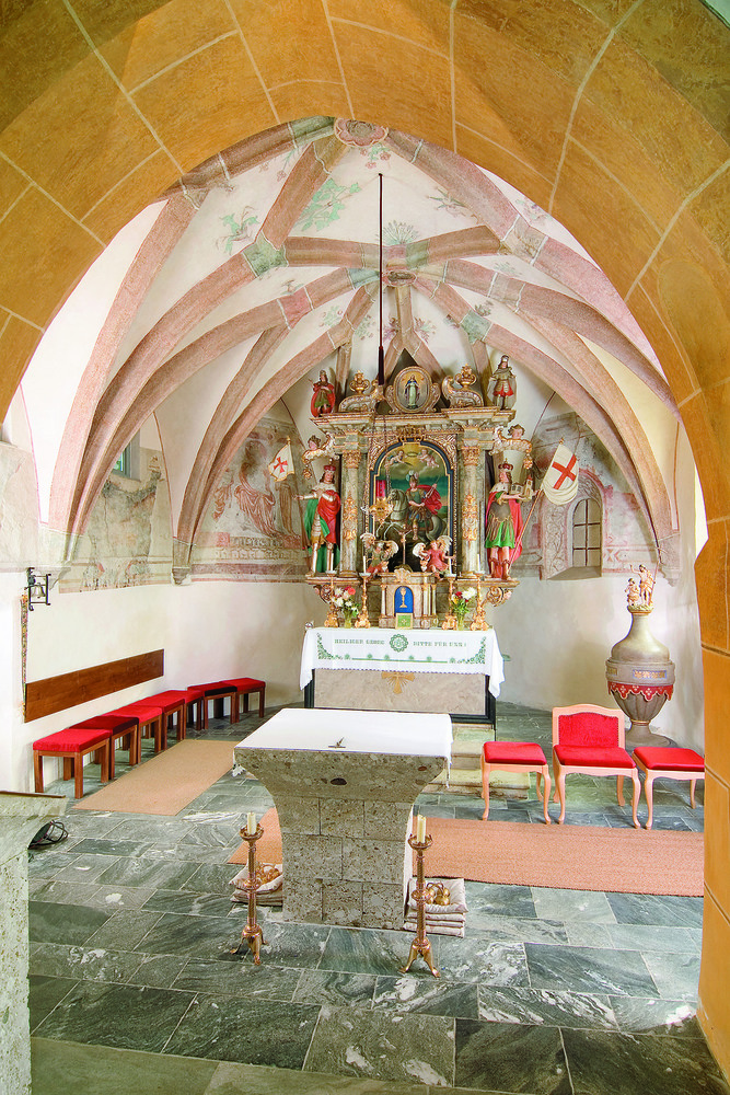 Seit Aufdeckung der Wandmalereien im Inneren weiß man aber, dass der Chor der Kirche noch im späten 14. Jahrundert errichtet wurde und sich die Stiftung des Grafen wohl auf einen Erweiterungsbau bezogen hat. Als Bauherr der, wie das Georgspatrozinium nahelegt, ritterlichen Gründung kommt sogar der damalige steirische Landesherr Herzog Ernst (Vater Kaiser Friedrichs III.) in Frage, der den heute als Pfarrhof genützten Bau bei der Kirche als Jagdhaus errichtet hatte.