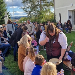 Alle Anwesenden lauschten gebannt im Rund unter herbstlicher Sonne und fallenden Blättern und bekamen in verschiedenen Gleichnissen versteckt für „ihre Premstättner Natur“ - speziell für den Kaiserwald - die Aufgaben und die Verantwortung zugeteilt. Die geleistete Spende für Speis und Trank geht an das Sozialprojekt der Gemeinde „Und das Christkind gibt es doch!“.