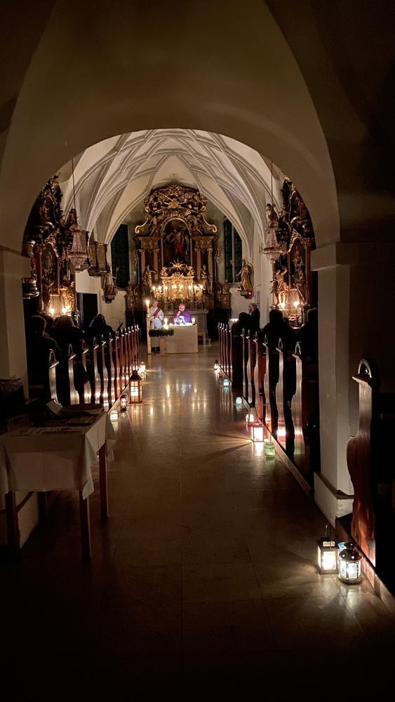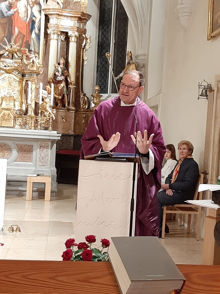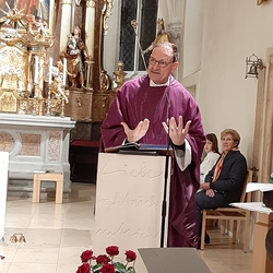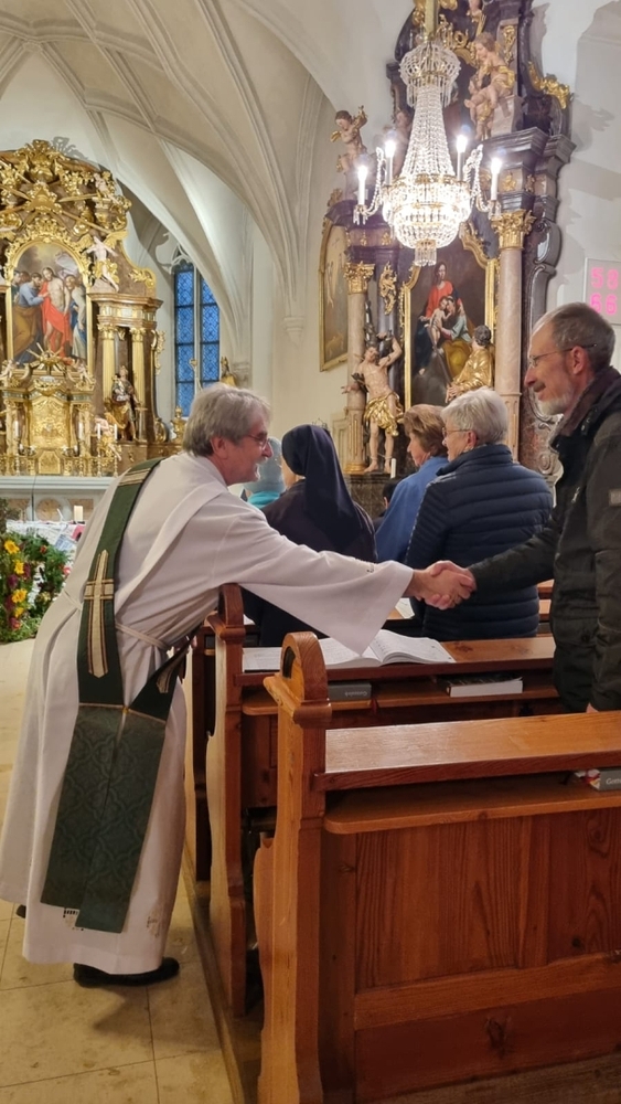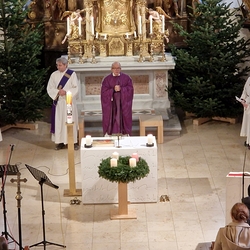 Gedanklich führte uns Vikar Norbert auf die Spur, was der Vers „Seid also wachsam!“ aus dem Evangelium (Mt 24, 42) für uns heute heißen kann - und wie die Vision des Jesaja, dass Schwerter zu Pflugscharen und Lanzen zu Winzermessern umgeschmiedet werden (Jes 2, 4), in unserer Welt ein Stück weit Wirklichkeit werden könnte. Es kann nur gelingen, wenn „Menschen ihr Lebensnavi in Jesus verankern“, so Vikar N. Glaser in seiner Predigt.