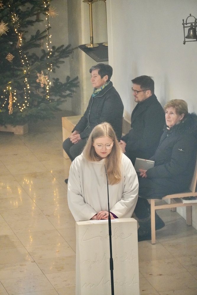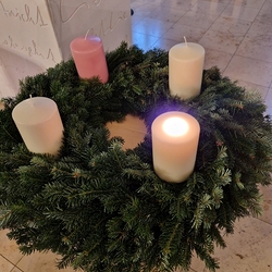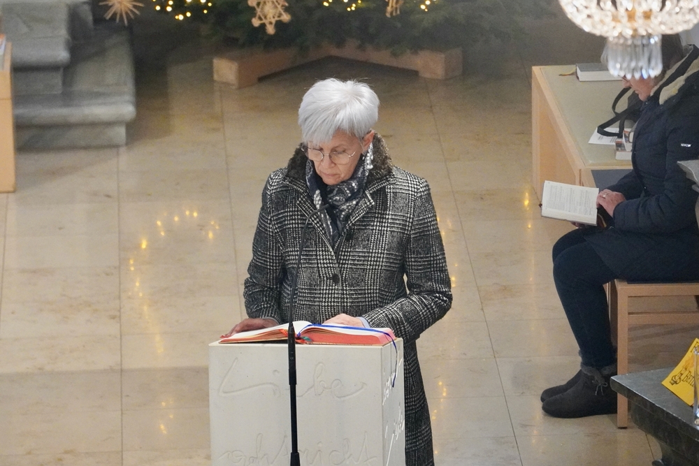 Bei der Wort-Gottes-Feier am Sonntag sprach WGF-Leiterin Christa Habith in Bezug auf Jesaja von der uralten Sehnsucht der Menschen nach Frieden und Gerechtigkeit. Nur durch Umkehr, siehe Johannes der Täufer (Mt 3, 1-12), kann Veränderung geschehen und Gott in uns ankommen. Umkehren heißt Haltungen überdenken, Altes verlassen und die Herzen öffnen.