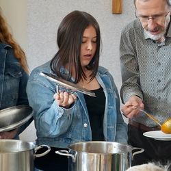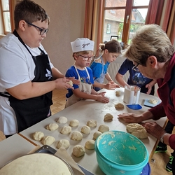 Dank Elena im Kindergarten Premstätten hatten sie neben dem Herd im Pfarrhof auch noch zwei weitere Herde in Verwendung, um die große Menge an geformten Teiglingen zu Köstlichkeiten zu verwandeln.