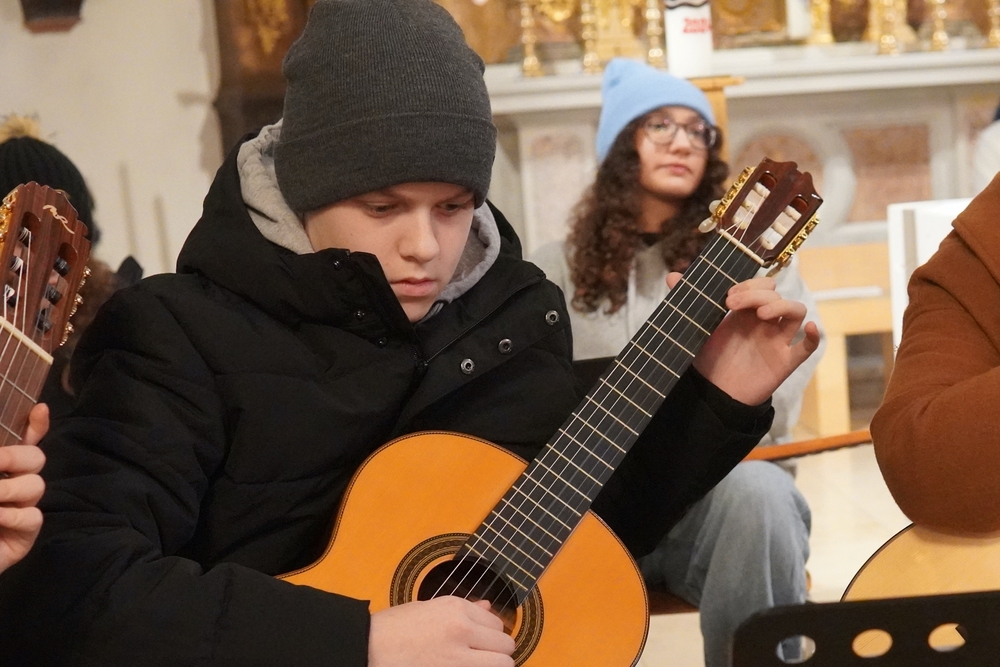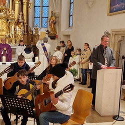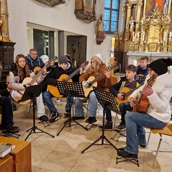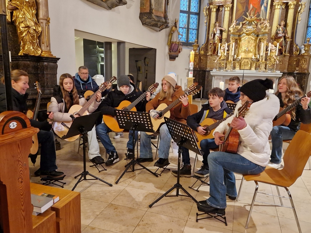 Mit viel Gefühl stimmten die jungen Musikerinnen und Musiker mit ihren Gitarren in die Adventzeit ein und bereicherten mit ihren Stücken die heilige Messe, die Vikar Norbert Glaser, unterstützt von Diakon Michi Zepf, zelebrierte.
