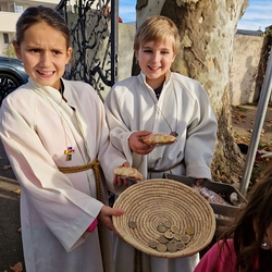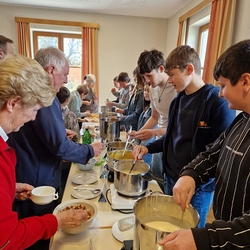 In dieser besonderen Stimmung fand man sich nach der heiligen Messe gerne im Pfarrheim zum Pfarrkaffee ein, den ein kleines Team liebevoll vorbereitet hatte. Zuvor konnte man anlässlich des Sonntags der Weltkirche - von den Minis angeboten - noch Schokopralinen kaufen, um sich und anderen Gutes zu tun!
