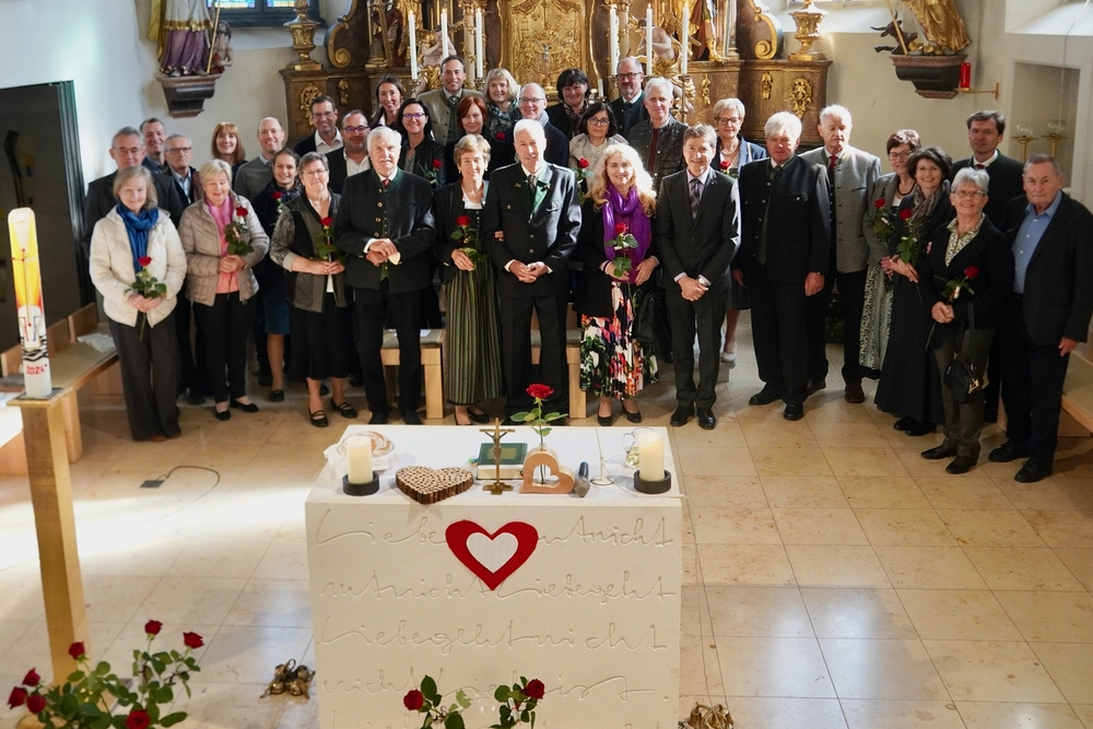 Viele Jahre oder Jahrzehnte als Ehepaar Hand in Hand zu gehen, ist ein Geschenk, wofür wir Gott danken dürfen. Seine Liebe, so Vikar Norbert Glaser in seiner Predigt, „wartet nicht in einem Präsidentenpalast, bis man zu ihr vordringt, sie macht sich von sich aus auf den Weg zu uns und bleibt“. Sie ist ein Universum, in dem wir uns in Gottes Hand geborgen wissen dürfen.