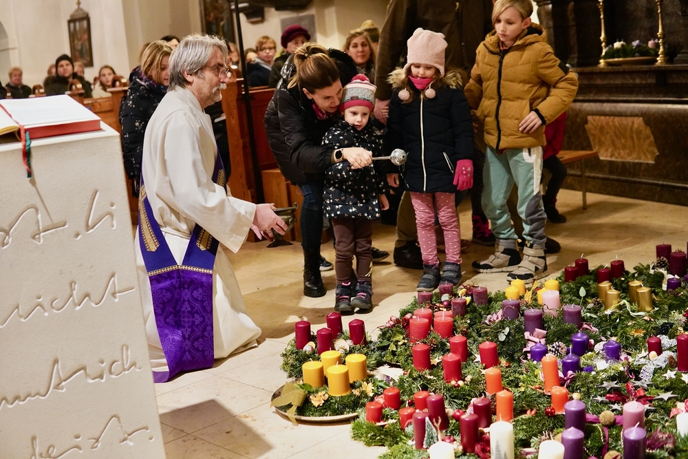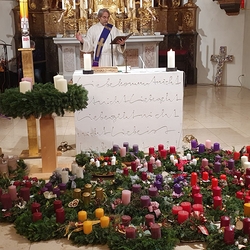 Diakon Michi Zepf segnete im Rahmen von Wort-Gottes-Feiern um 18 Uhr in der Pfarrkirche und um 19 Uhr in der Kaiserwald-Kapelle die herbeigebrachten Adventkränze.