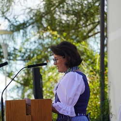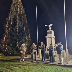 Musikalisch gestaltete eine Abordnung der MUZ von der Empore aus die heilige Messe - und auch danach beim Totengedenken mit Kranzniederlegung vor dem Kriegerdenkmal waren die Musiker*innen zur Stelle.