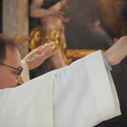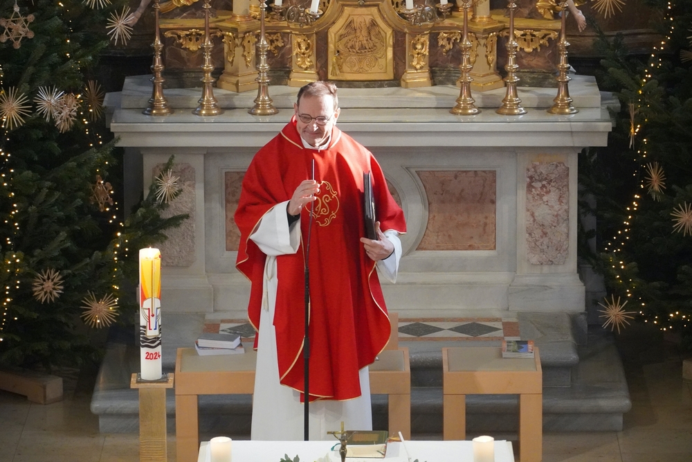 Nach dem feierlichen Einzug betonte Vikar Norbert in der Begrüßung, wie schön es ist, dass Johannes neben vielen anderen ehrenamtlichen Tätigkeiten (Kantor, Organist …) nun auch den Dienst des Diakons ausüben wird.