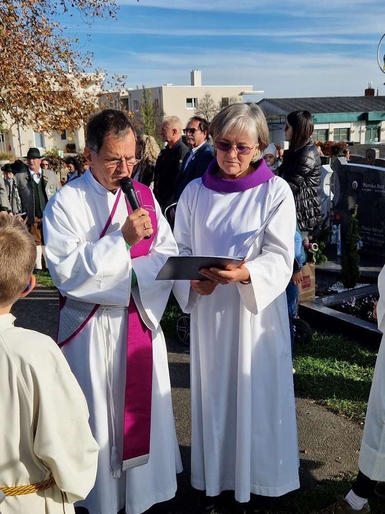 Bei strahlendem Herbstwetter segneten Diakon Franz Habith und Wort-Gottes-Feier- Leiterin Christa Habith die Gräber auf unserem Friedhof.