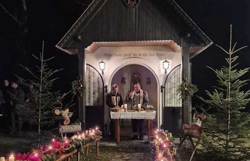 Pfarrer Mag. Anton Lierzer zelebrierte die Messe, die von den Jagdhornbläsern Schwanberg stimmungsvoll musikalisch umrahmt wurde. Zahlreiche Besucherinnen und Besucher aus der Region nahmen daran teil und starteten gemeinsam in eine besinnliche Adventzeit.