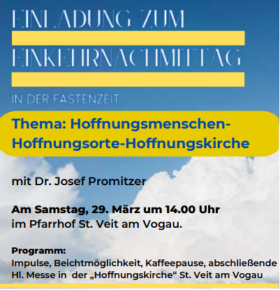 Impulse, Beichtmöglichkeit, Kaffeepause, abschließende Hl. Messe in der "Hoffnungskirche" St. Veit am Vogau