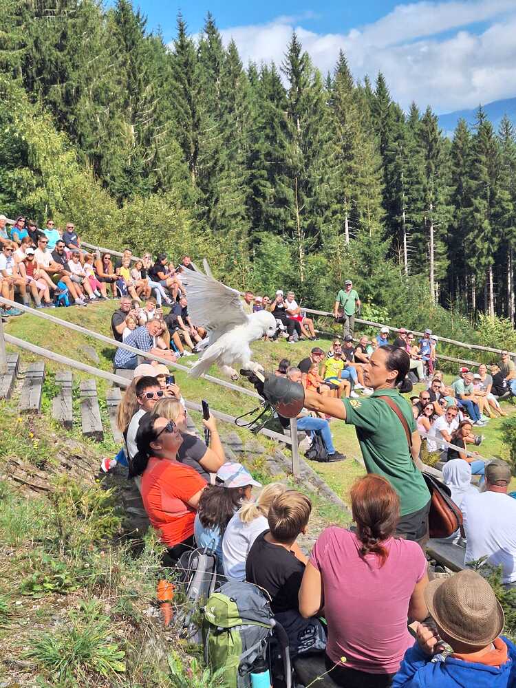 Im Tierpark wurde die Wildkatzenfütterung aus nächster Nähe beobachtet, die Flugkünste von Schneeeule und Co wurden bei der Greifvogelschau bewundert und im Spielpark genossen die Kinder den „Wilden Flug“, den „Großen Platsch“ uam. Die Mutigen fuhren schließlich mit der Sommerrodelbahn ins Tal.