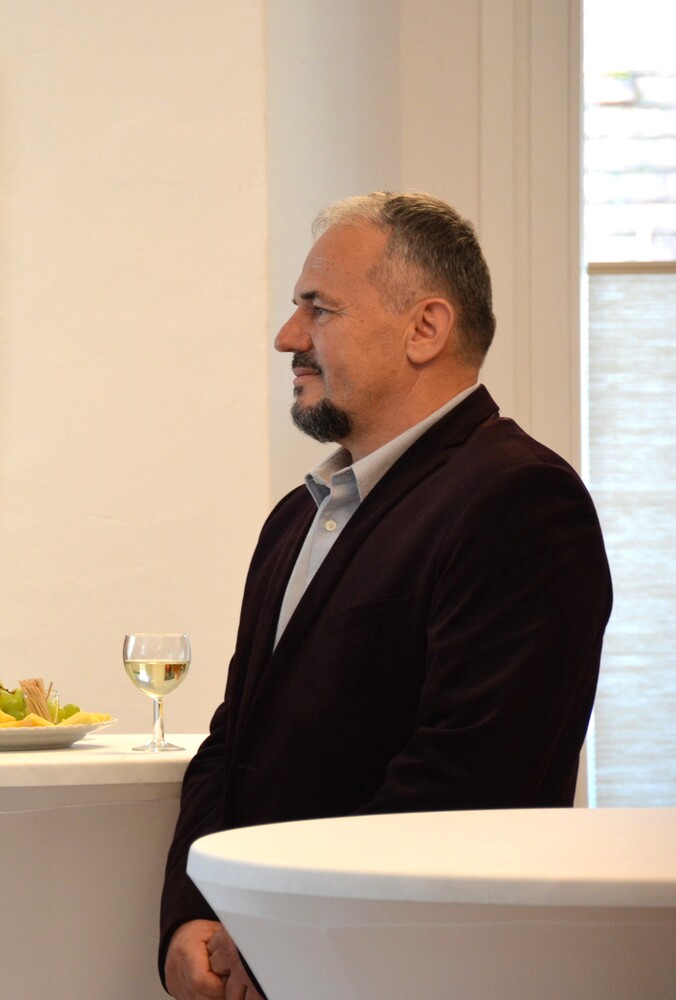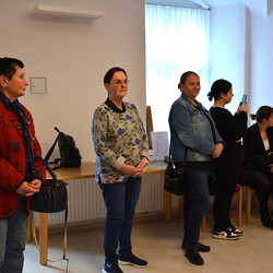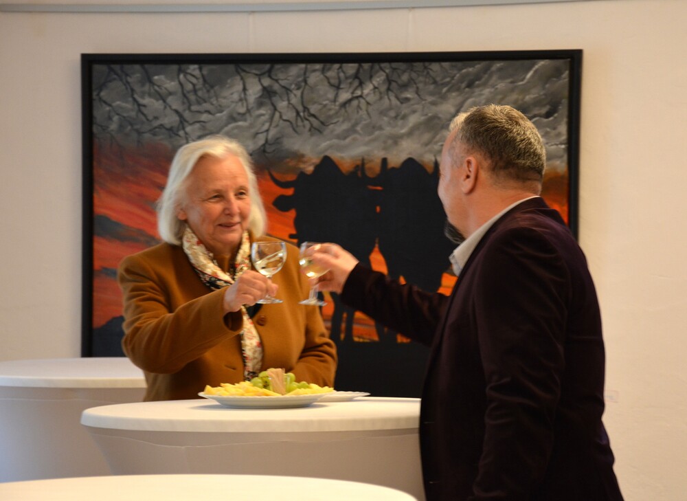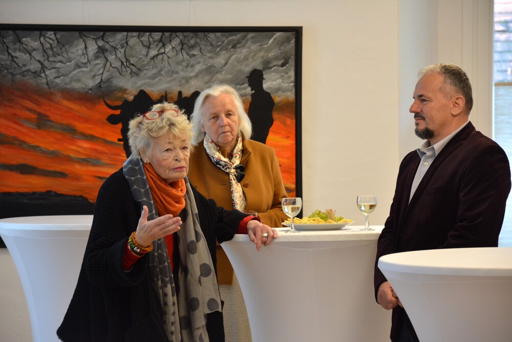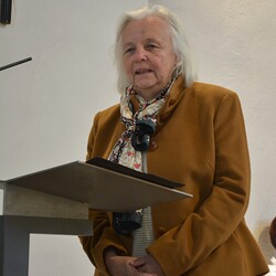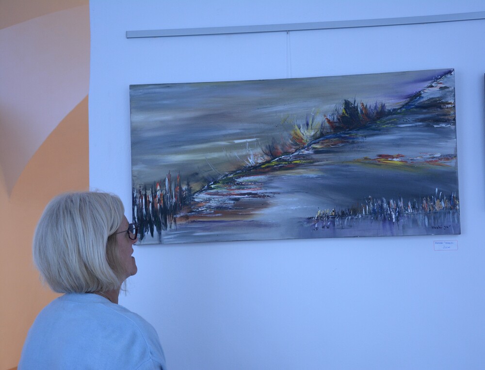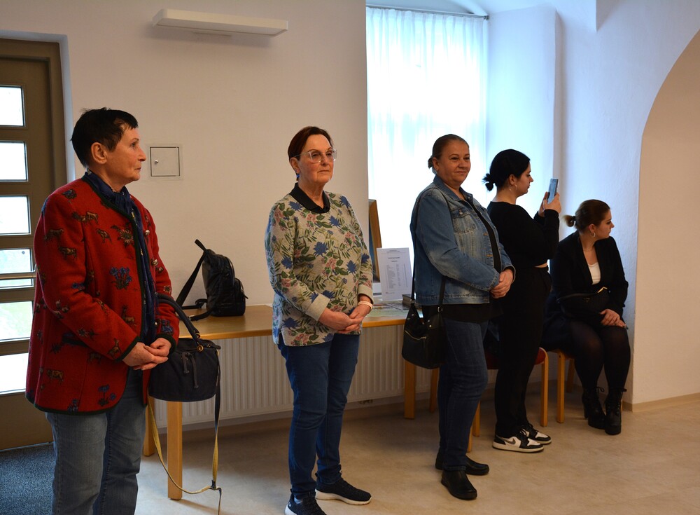 Susanne Linhardt leitet die Wort-Gottes-Feier und Vernissage zur Ausstellung von Haxhi Fejzullahi