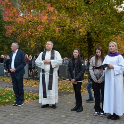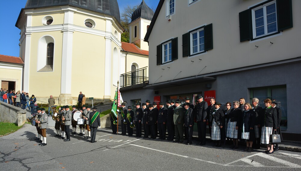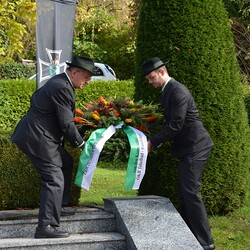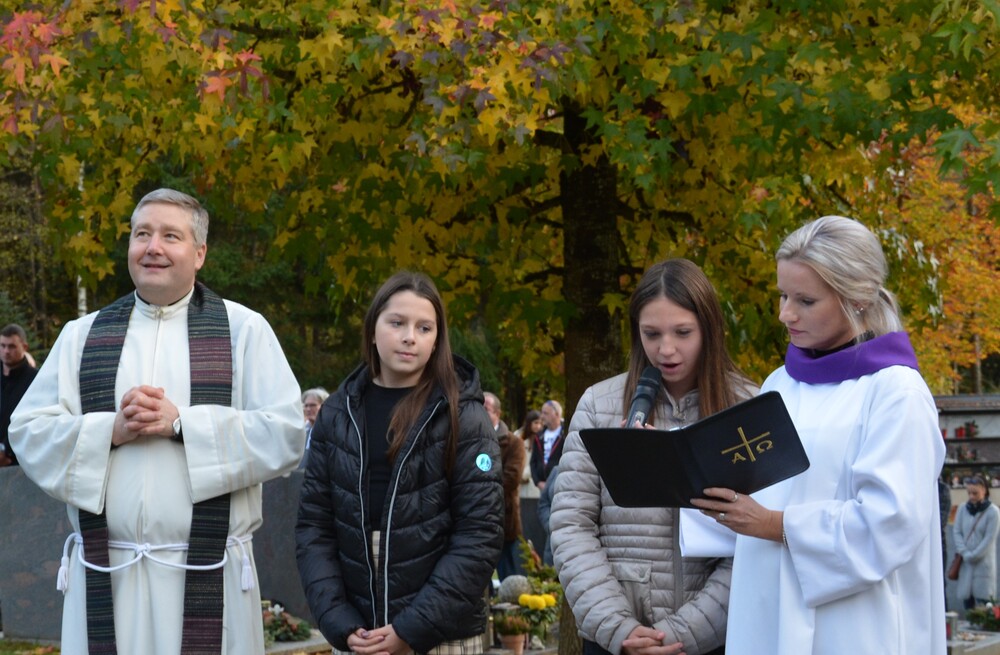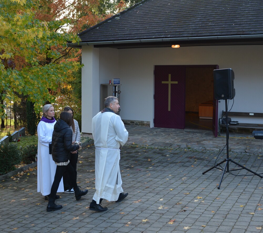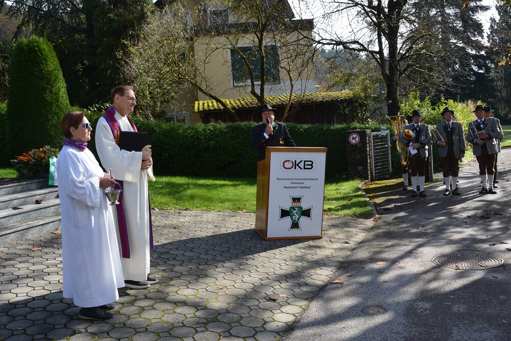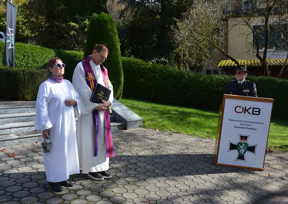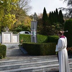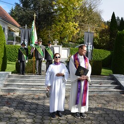 Beim Kriegerdenkmal gedachte der ÖKB mit der Pfarrgemeinde der Opfer beider Weltkriege. Am Waldfriedhof segneten Pfarrer Claudiu Budău mit Pastoralreferentin Ines Kvar und Krankenhausseelsorger Franz Karner die Gräber und die renovierte Aufbahrungshalle. Margret Hofmann, Pastorales Pfarrteam Liturgie und Öffentlichkeitsarbeit