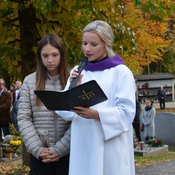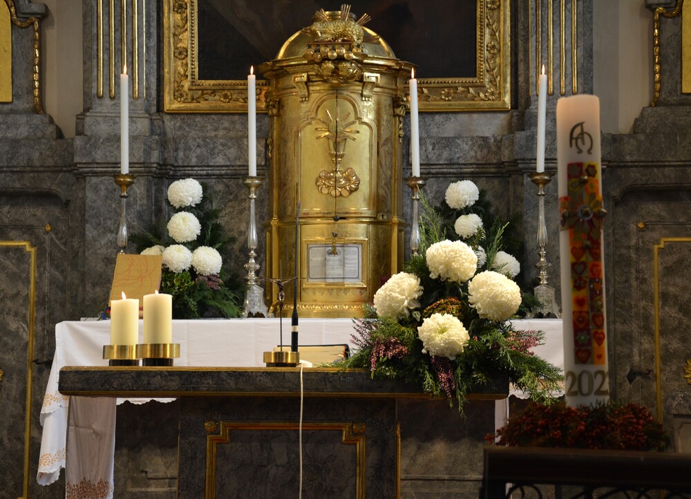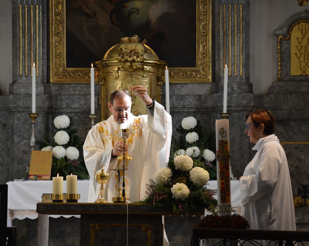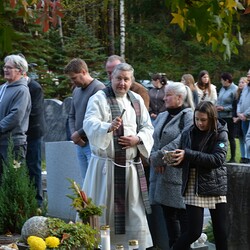 Unser Gedanken wandern nochmals hin zu unseren Verstorbenen. Sagen wir ihnen in Stille, wofür wir ihnen besonders dankbar sind. Wir denken vielleicht auch an versäumte Möglichkeiten, hätten vielleicht gerne mehr an Liebe geschenkt oder konnten manche Dinge nicht mehr bereinigen. Gerade deshalb tröstet uns der Gedanke, dass wir unseren Verstorbenen helfen können mit Gebeten und guten Werken in der Läuterung auf ihrem Weg zu Gott. Wir ehren sie, wenn wir das Gute, dass sie uns vorgelebt haben in unserem Leben weiterführen und dort verzeihen, wo sie uns weh getan haben. Wie sich beim auferstandenen Herrn alle Wunden verklärten, so möge sich ihr Leben nun verherrlichen und verklären; mögen sie im großen unendlichen Raum göttlicher Liebe den Himmel finden.