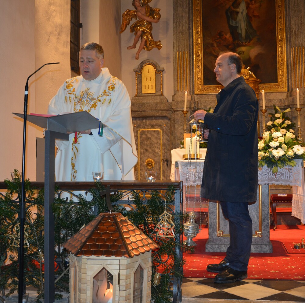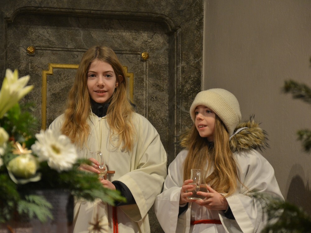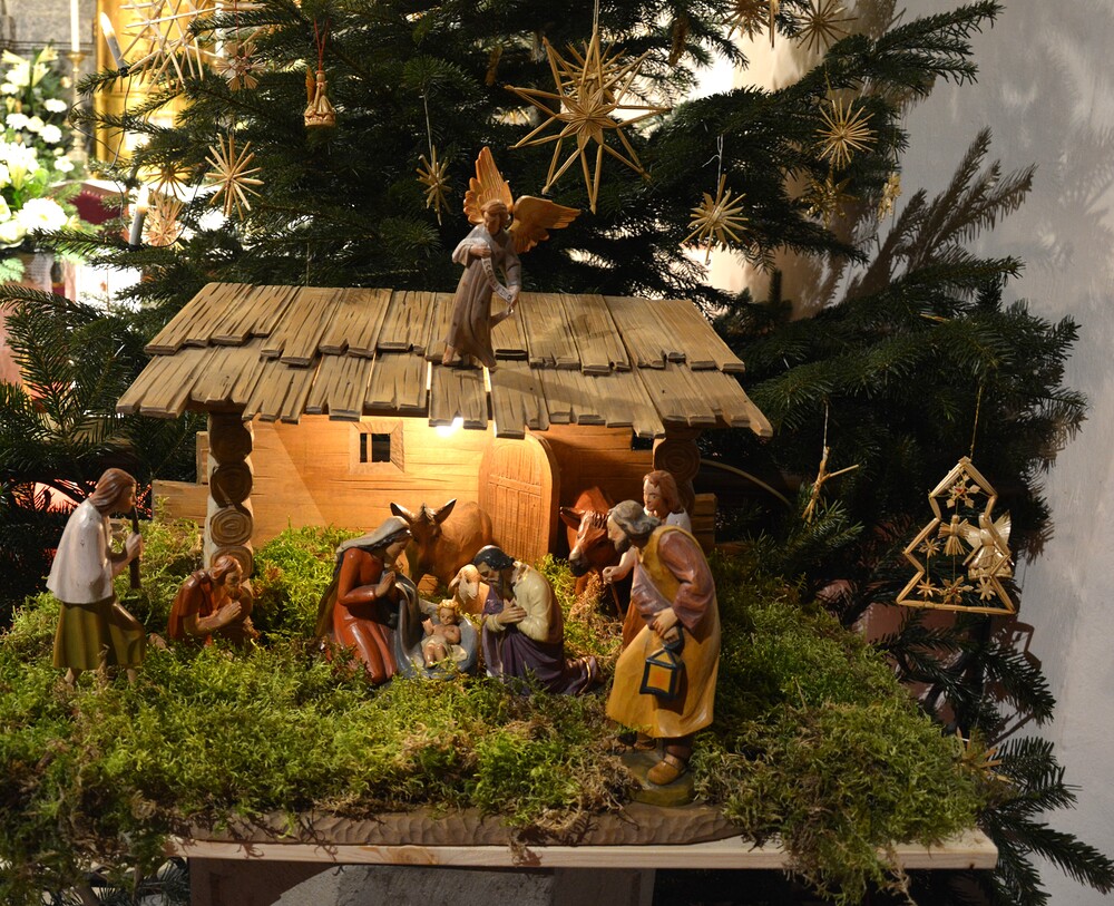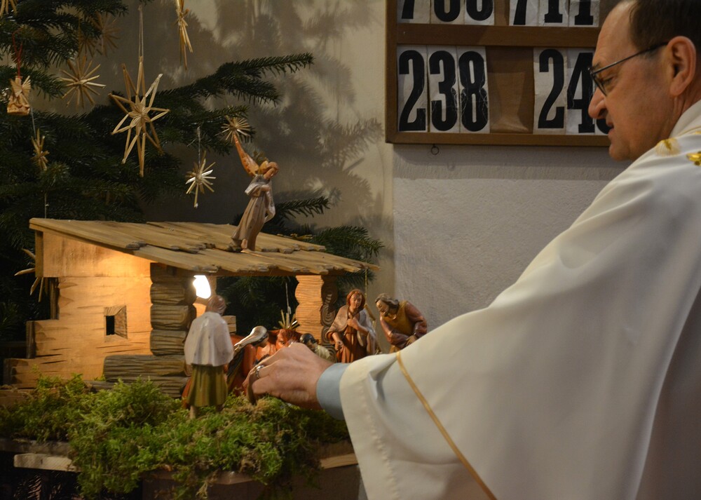 Krippenspiel, Mette und Hochamt am Christtag sind drei Möglichkeiten, dem Geheimnis der Weihnacht ganz nah zu kommen. Die Kinder singen und spielen die mehr als zweitausend Jahre alte Geschichte, in einigen Szenen stellen sie eine berührende Nähe zur Gegenwart her. Auch Pfarrer Claudiu Budău zeichnet einen Bogen ins Jetzt. Vom Kind, das von Jesaja verkündet wird, zum Kind in der Krippe und zu einem Kind im Einkaufszentrum. Diese Verbindung ins Heute stellt Vikar Gerhard Hatzmann am Christtag mit dem Esel aus dem Stall von Bethlehem her. Er stellt die Frage: „Welche Figur in der Krippe ist dir ein Vorbild?“ Margret Hofmann, Pastorales Pfarrteam Liturgie und Öffentlichkeitsarbeit