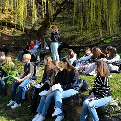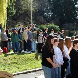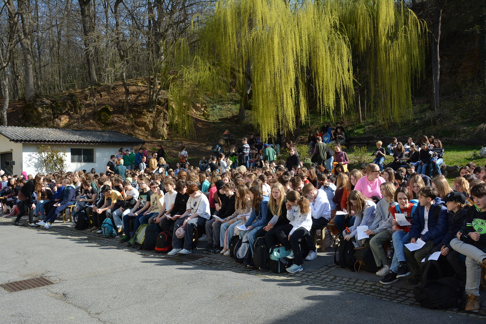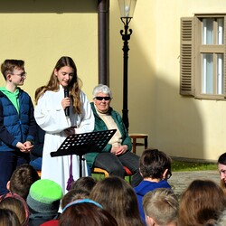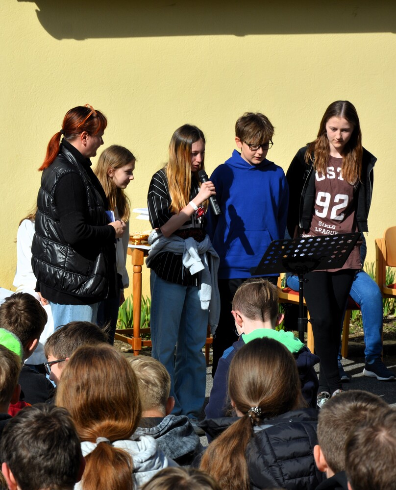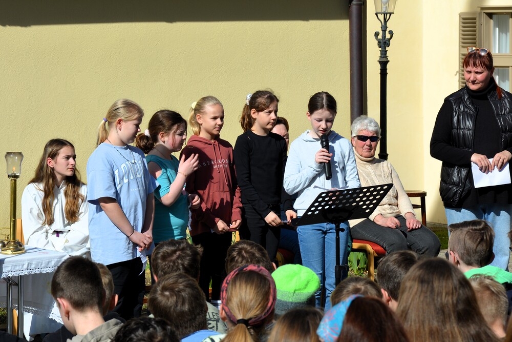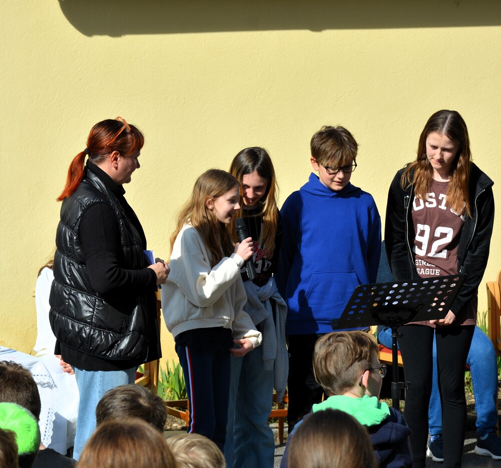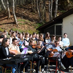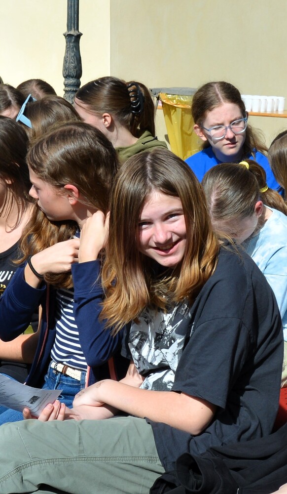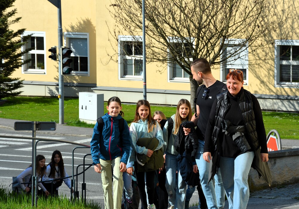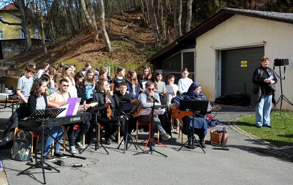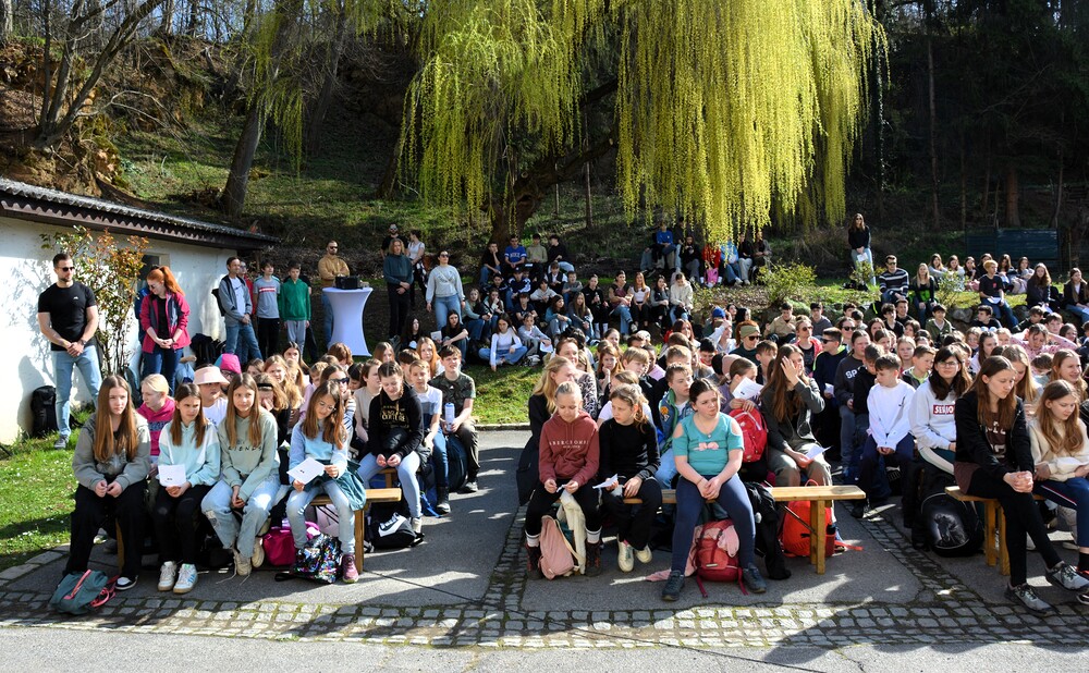 Traditionelle Fuß-Wallfahrt der PMS Dobl unter der neuen Leitung von Direktor Michael Rauch zur Kirche nach Tobelbad. Pfarrer Claudiu Budău feierte mit 360 Kindern und Lehrer:innen die Hl. Messe. Flotte Lieder waren vom Schulchor mit Gitarren- und Geigenbegleitung unter der Leitung von Sr. Maria Leopold zu hören. Als Agape gab es Saft und Brot für die Kinder, die vom Tobelbader Bewirtungsteam ein großes Lob bekommen. Sie waren diszipliniert, freundlich und aufmerksam!