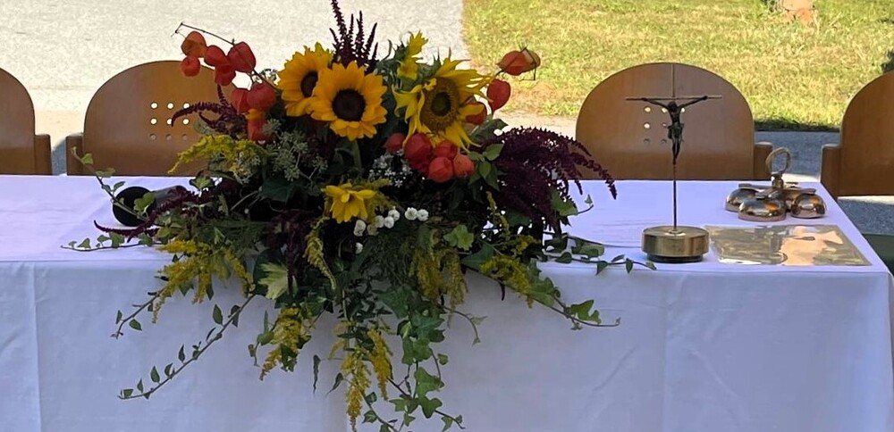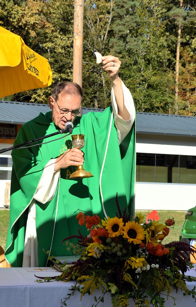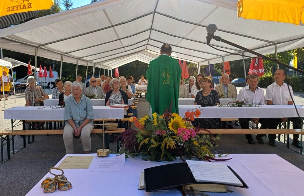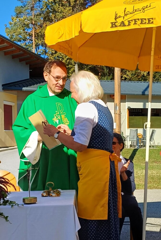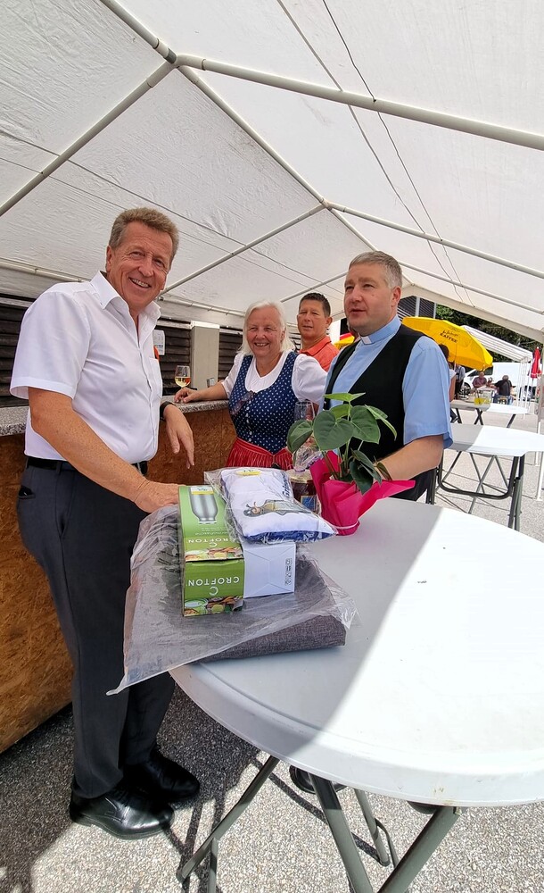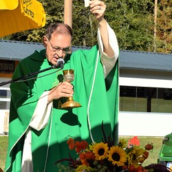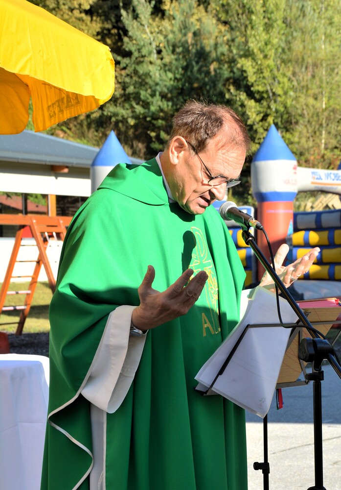Vikar Gerhard Hatzmann zelebriert den Festgottesdienst zum Pfarrfest am "KIRCHORT Sammelzentrum der Gemeinde Haselsdorf-Tobelbad"
