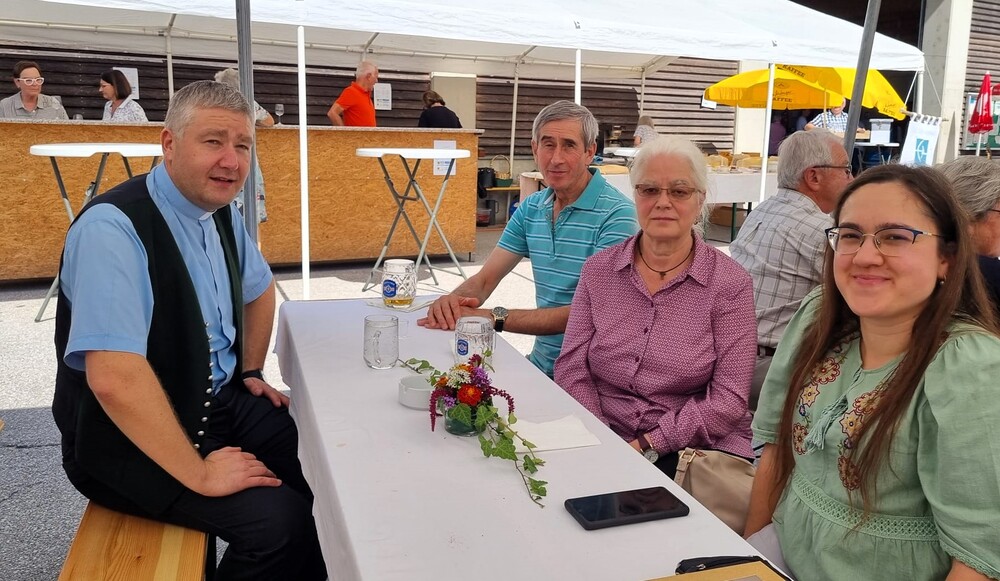 Drei Aspekte aus den heutigen Texten gibt uns Vikar Gerhard Hatzmann mit: "Schätze für den Himmel zu sammeln, Zuhören und in den Menschen hineinhorchen - wer wirklich horchen kann, der kann auch im Geist Jesu sprechen." Eine gute Gelegenheit aufeinander zu hören und einander zu stärken, gibt es dann auch gleich beim Pfarrfest, zu dem sehr viele Gäste gekommen sind. Besonders freuen wir uns über ehemalige Bewohner der Pfarre, die sich bei uns mit Freunden getroffen haben.