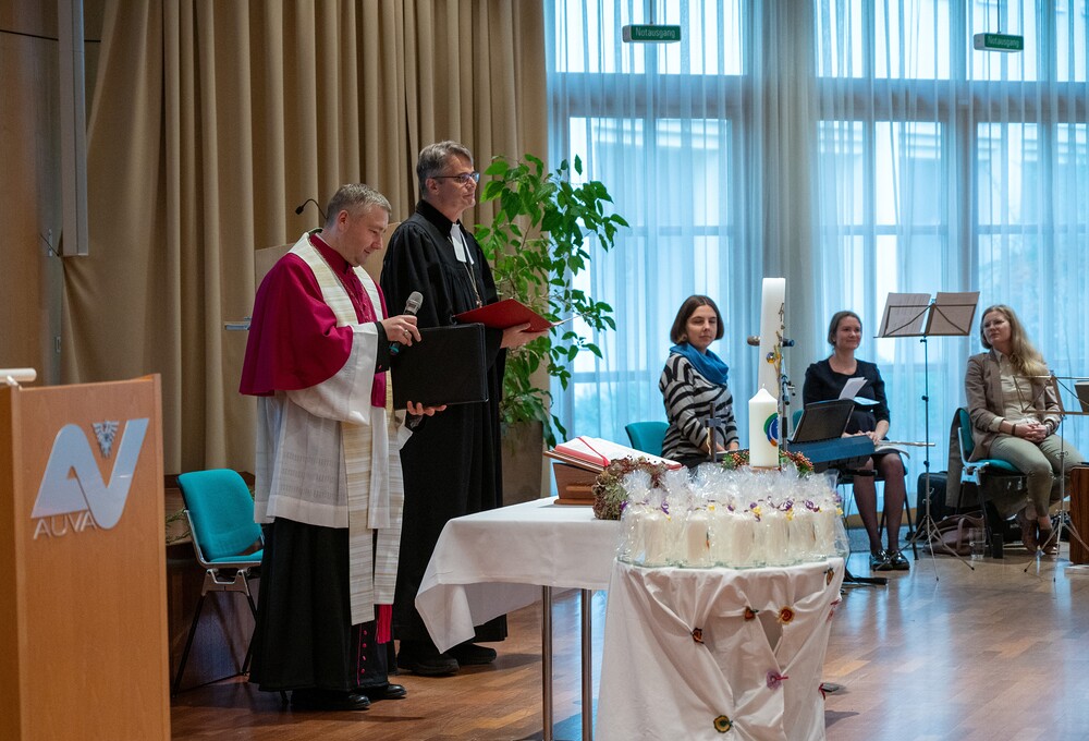 Am 18. Oktober fand in Tobelbad die feierliche Zertifikatsverleihung des Ökumenischen Lehrgangs der Aufsuchenden Seelsorge für Pflegeheim und Zuhause statt. Im Festsaal der Rehabilitationsklinik der AUVA wurden 18 Absolvent:innen für ihre erfolgreiche Teilnahme am Lehrgang ausgezeichnet. Die Sendungsfeier wurde im ökumenischen Miteinander, vom Superintendent Wolfgang Rehner, von der Evangelischen Kirche Steiermark und dem Seelsorgeraumleiter Kaiserwald, Lic. theol. Claudiu Budău, feierlich gestaltet.