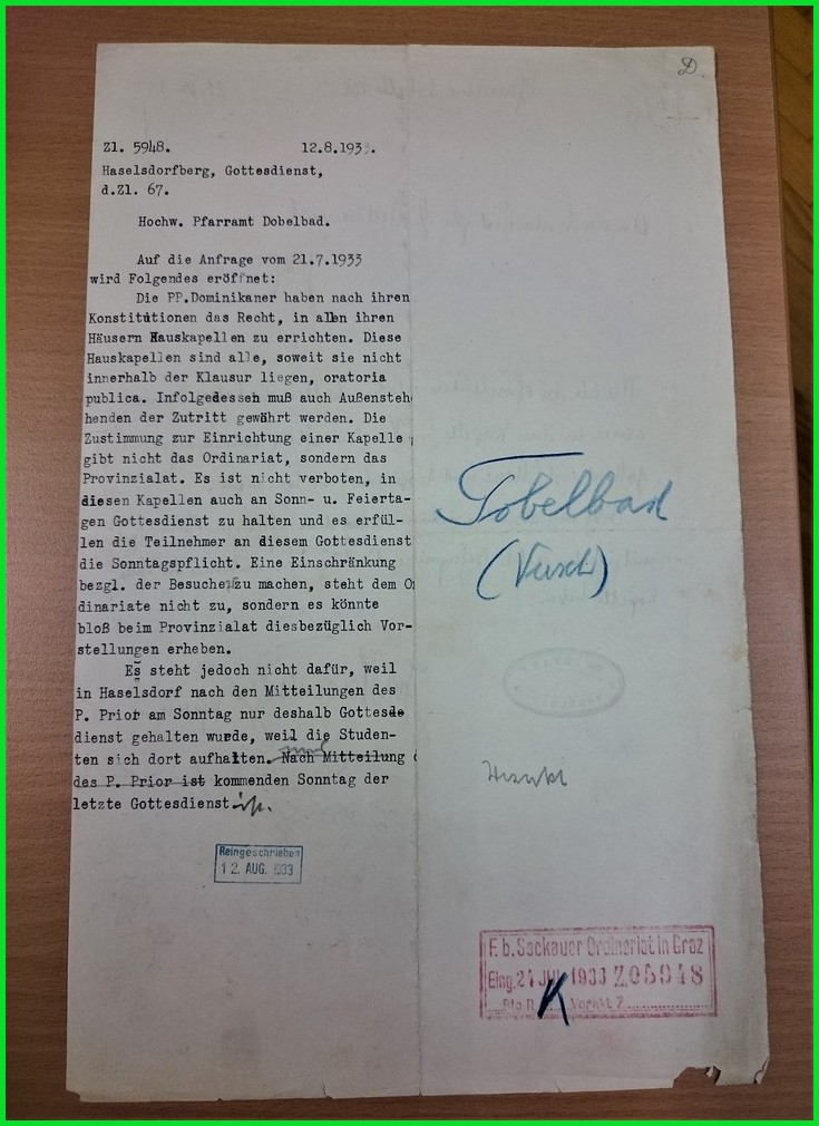 „Zur Maria“ geh'n ....." (Leitspruch der Familie)