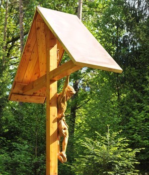 Das Kreuz wurde vom Ehemann Franz vor 15 Jahren selbst gezimmert und neben dem Wohnhaus aufgestellt. Den Herrgott hat Gottfried Spuller geschnitzt. Ein persönlicher Wunsch ging damit in Erfüllung.