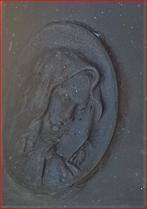 Es dürfte sich bei der Darstellung um einen Öldruck von Ende des 19. Jahrhunderts handeln. Ein Maler dieses Bildes ist nicht bekannt, jedoch folgt die Darstellung in sehr freier Weise dem Marienbildtypus der "Maria vom guten Rat". Maria ist dabei im Typus der Eleousa (Mitleidende, Erbarmerin) dargestellt. Die halbfigurige Maria wird dabei zärtlich vom Jesuskind umarmt.