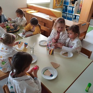 Am Rosenmontag feierten wir im Pfarrkindergarten das FARBENFEST, da wir uns aktuell mit dem Thema Farben auseinandersetzen. Im Vorfeld lernten unsere Kinder durch Lieder und Erzählungen die Grund-und Mischfarben kennen. Für das FARBENFEST haben sie mit ihren Malfähigkeiten ihre eigene Verkleidung gestaltet, indem sie selbst ein Hemd kunterbunt bemalten.