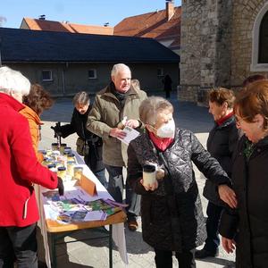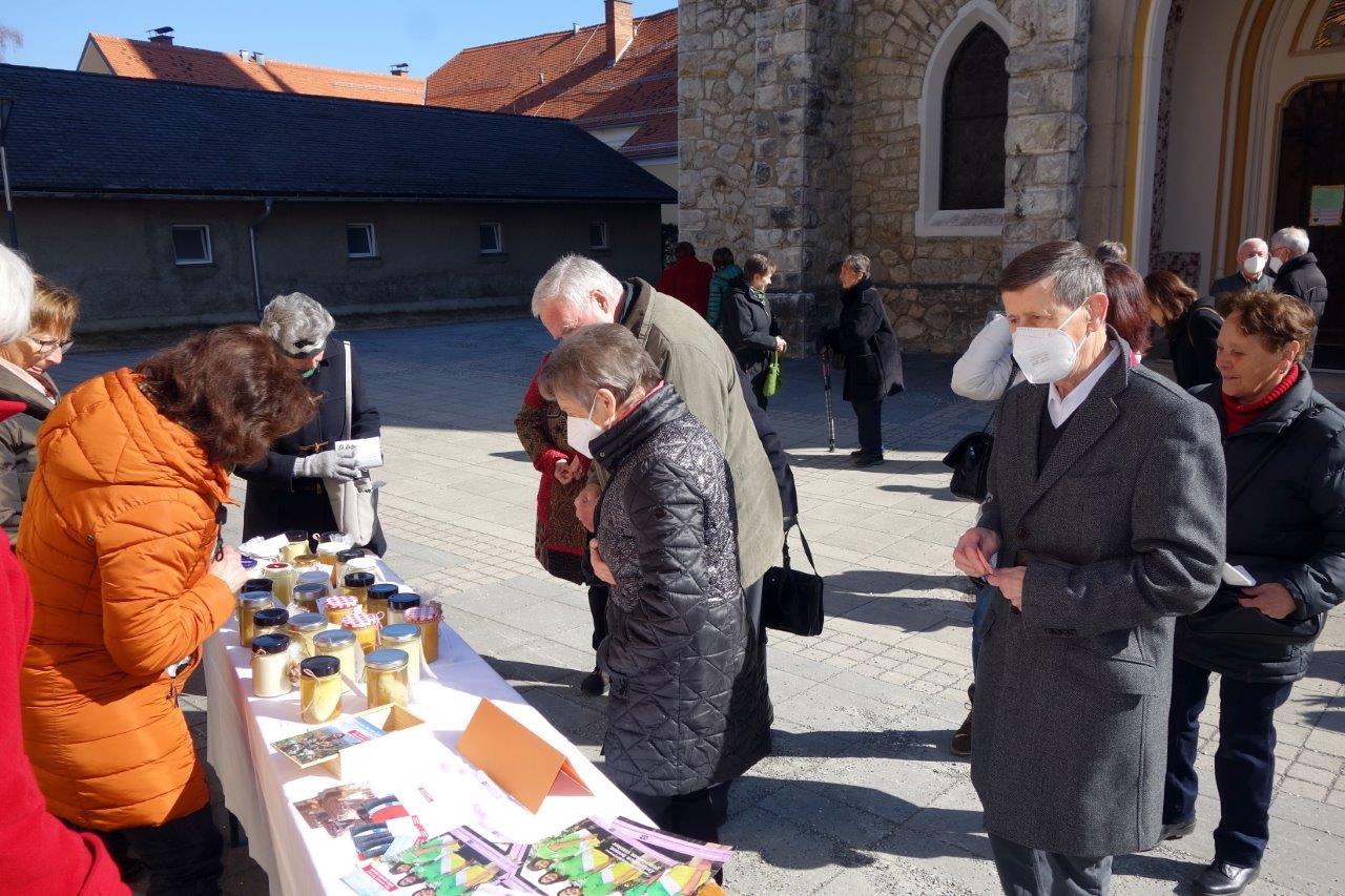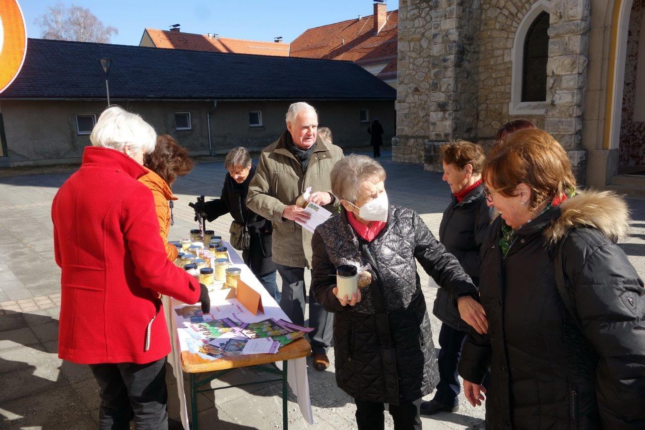 Das beliebte gemeinsame Suppenessen im Pfarrhof war auch heuer wegen Corona nicht möglich, weshalb die KFB „Suppe im Glas“ am Sonntag nach der Heiligen Messe am Kirchplatz angeboten hat. Monika Gaber, Leiterin der KFB, berichtete die Zielsetzungen der Aktion 2022. Es soll mit den freiwilligen Spenden die Frauenorganisation AKKMA auf den Philippinen im Großraum Manila unterstützt werden. Die Frauen von AKKMA sorgen dort füreinander gemeinsam gegen Armut, Arbeitslosigkeit und Chancenlosigkeit.