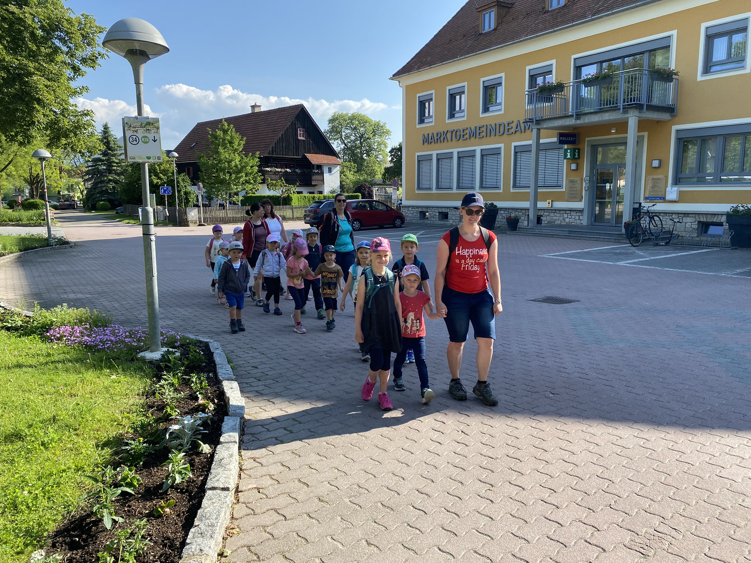 Unlängst spazierten wir von unserem Pfarrkindergarten zu Familie Madl/Raffler nach Eberdorf.