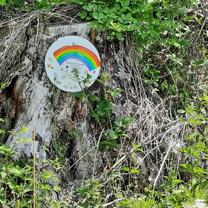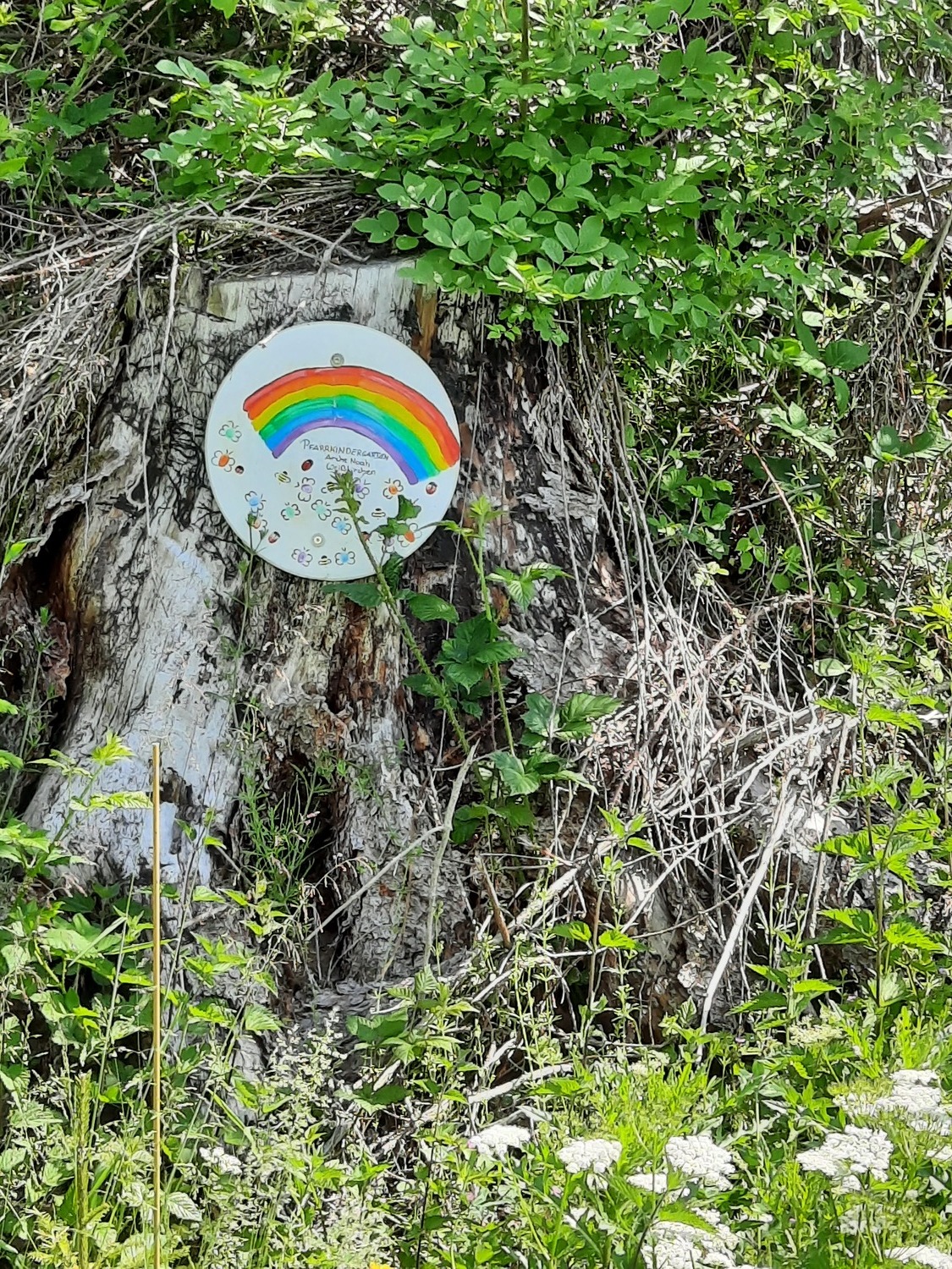 Außerdem entdeckten wir an vielen Bäumchen die Garderoben-Zeichen, mit denen wir diese gekennzeichnet hatten. Die Kinder wussten noch genau, mit wem gemeinsam sie ein Bäumchen gesetzt hatten.