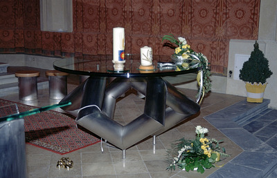 Altar und Ambo bilden die geistliche Mitte des Kirchraumes in der Pfarrkirche. Der Altartisch wurde vom Grazer Künstler Kurt Stadler entworfen. Ein wohldurchdachtes Konzept für Altartisch und Ambo steckt dahinter.