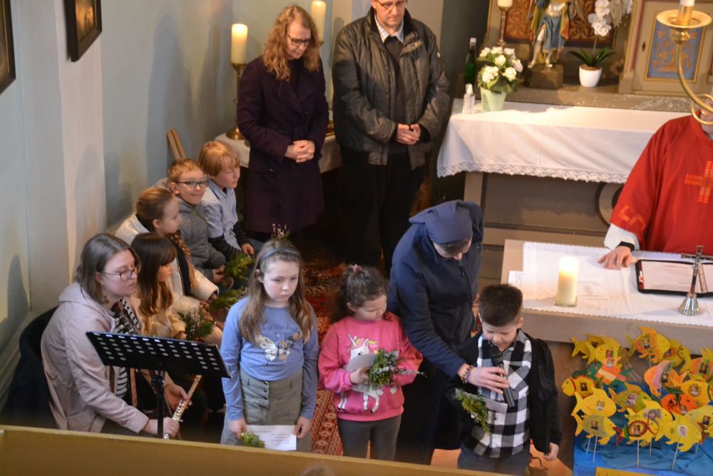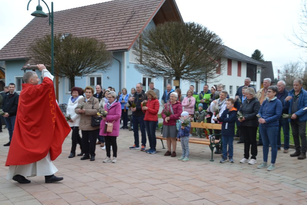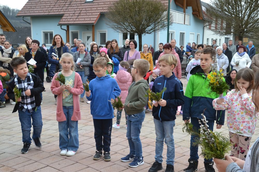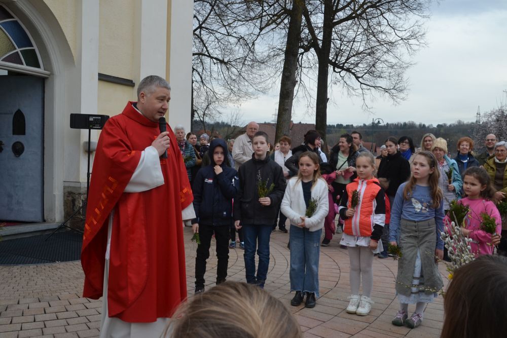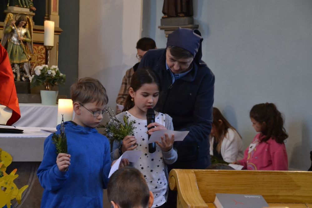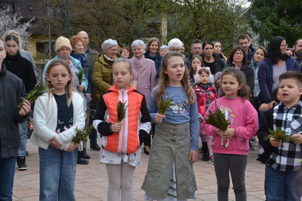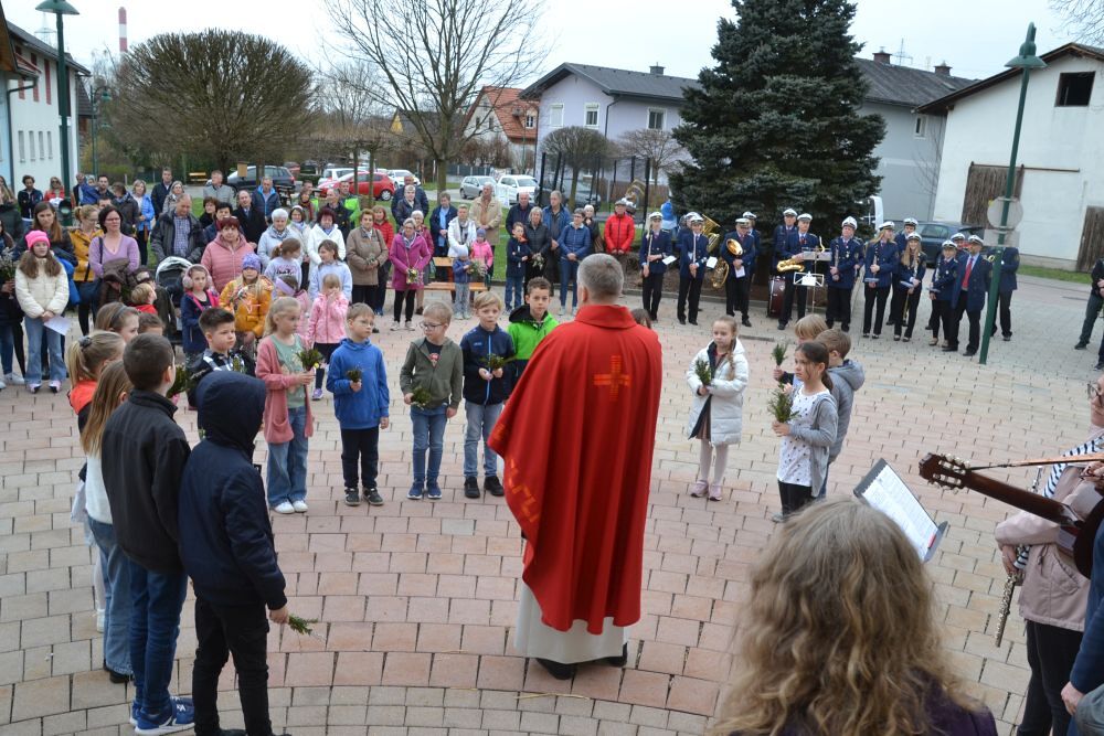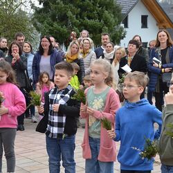 Donnerstag, 21. März 2024 - Kapelle Werndorf - Segnung der Palmzweige durch Pfarrer Claudiu Budau vor der Kapelle - Musik - Jugendkapelle Werndorf und Sr. Maria - Gottesdienst in der Kapelle mit Vorstellung der Werndorfer Erstkommunionkinder